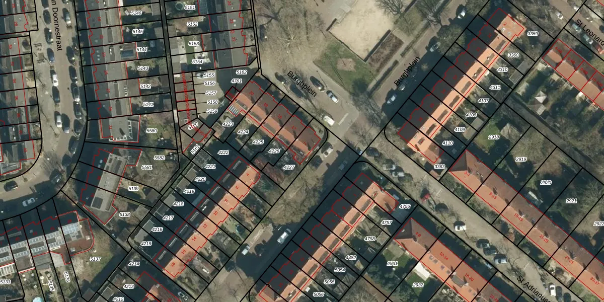 Gebruik de zoekbalk of klik op een perceel voor informatie over de adressen binnen dit perceel.