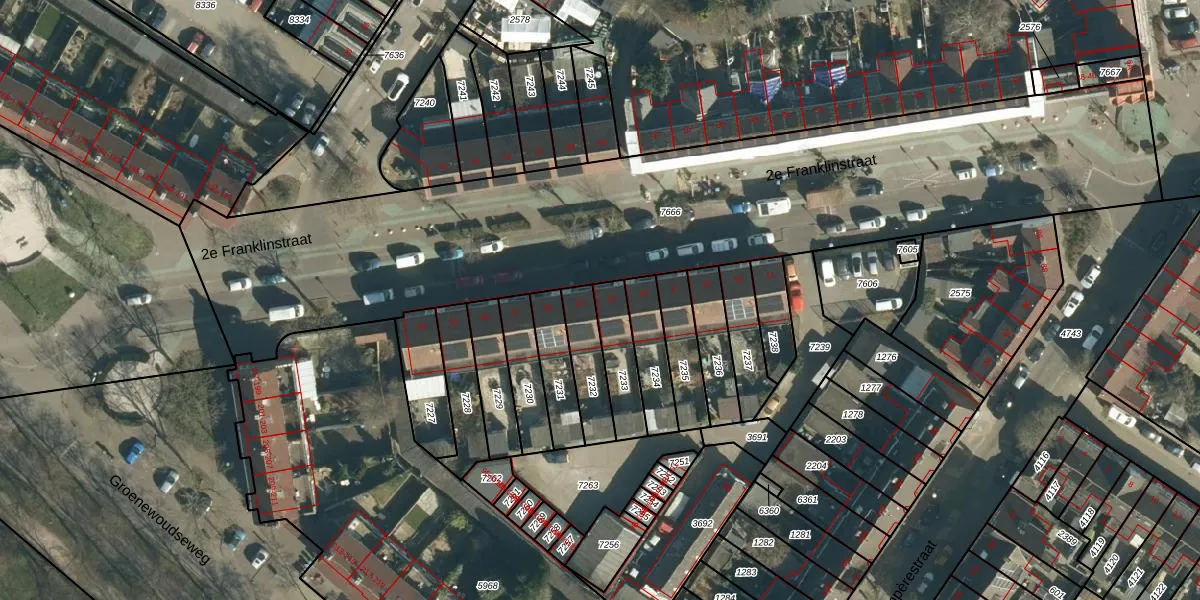 2e Franklinstraat 21 is gelegen op kadastraal perceel WSL01G7233. Deze kadastrale aanduiding is uniek en wordt gebruikt door het Kadaster om eigendomsrechten en andere zakelijke rechten vast te leggen. Het perceel maakt onderdeel uit van de kadastrale gemeente Woensel.