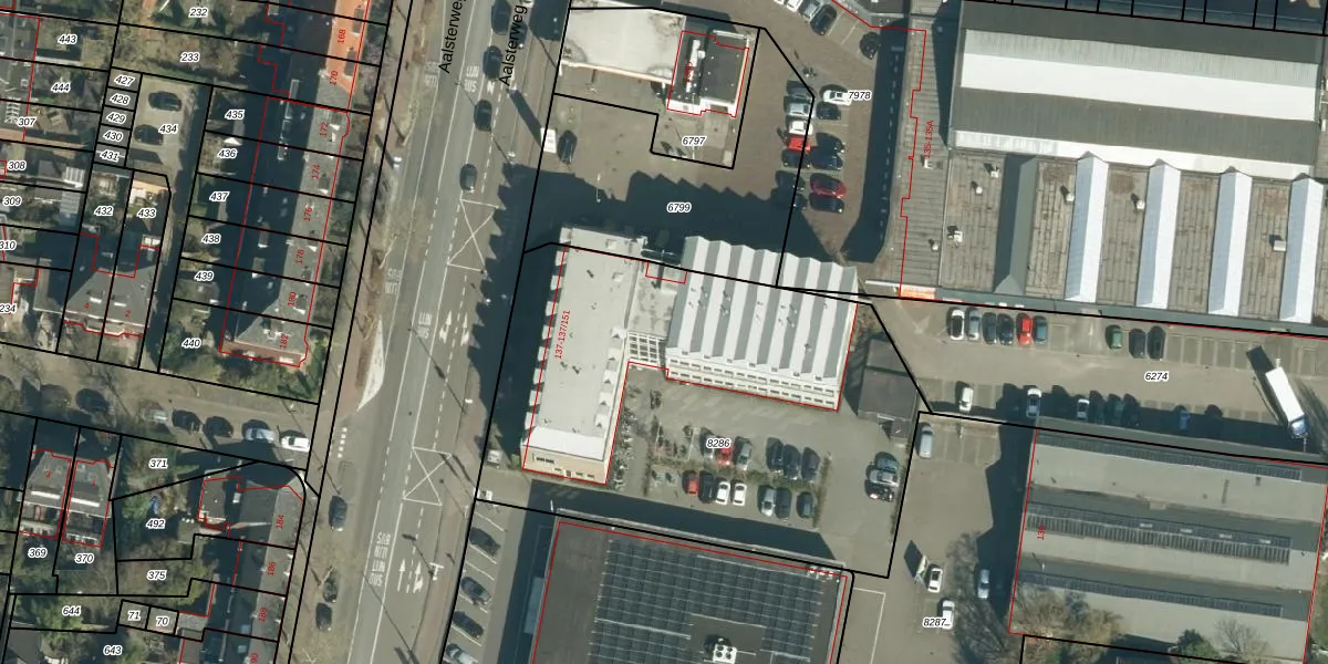 Het perceel waarop Aalsterweg 137-111 staat heeft een oppervlakte van 2455 m². Dit is een zeer groot perceel. De perceeloppervlakte wordt geregistreerd door het Kadaster. Gedetailleerde informatie over de maten van dit perceel kunt u vinden in het rapport Kadastrale kaart met maatvoering van Aalsterweg 137-111.