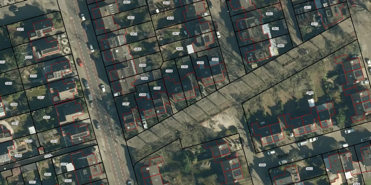 Gebruik de zoekbalk of klik op een perceel voor informatie over de adressen binnen dit perceel.