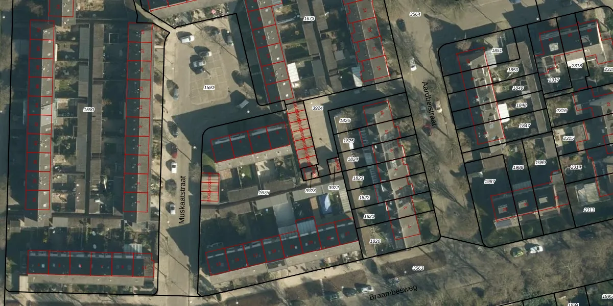 Het perceel waarop Aardbeistraat 13-G02 staat heeft een oppervlakte van 2390 m². Dit is een zeer groot perceel. De perceeloppervlakte wordt geregistreerd door het Kadaster. Gedetailleerde informatie over de maten van dit perceel kunt u vinden in het rapport Kadastrale kaart met maatvoering van Aardbeistraat 13-G02.