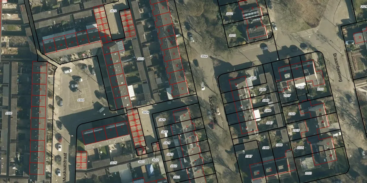 Het perceel waarop Aardbeistraat 15 staat heeft een oppervlakte van 5266 m². Dit is een zeer groot perceel. De perceeloppervlakte wordt geregistreerd door het Kadaster. Gedetailleerde informatie over de maten van dit perceel kunt u vinden in het rapport Kadastrale kaart met maatvoering van Aardbeistraat 15.