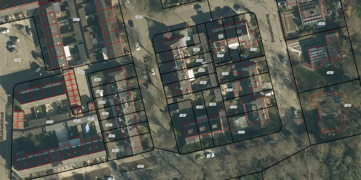 Gebruik de zoekbalk of klik op een perceel voor informatie over de adressen binnen dit perceel.
