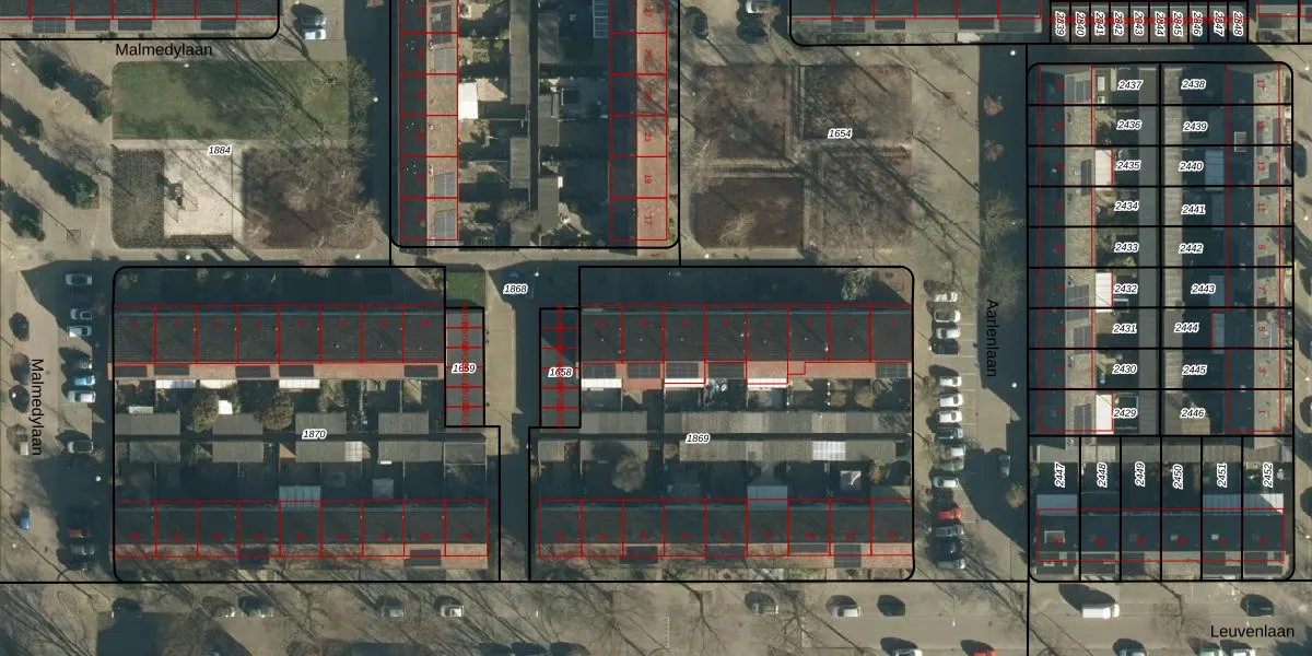 Aarlenlaan 13 is gelegen op kadastraal perceel WSL01M1869. Deze kadastrale aanduiding is uniek en wordt gebruikt door het Kadaster om eigendomsrechten en andere zakelijke rechten vast te leggen. Het perceel maakt onderdeel uit van de kadastrale gemeente Woensel.