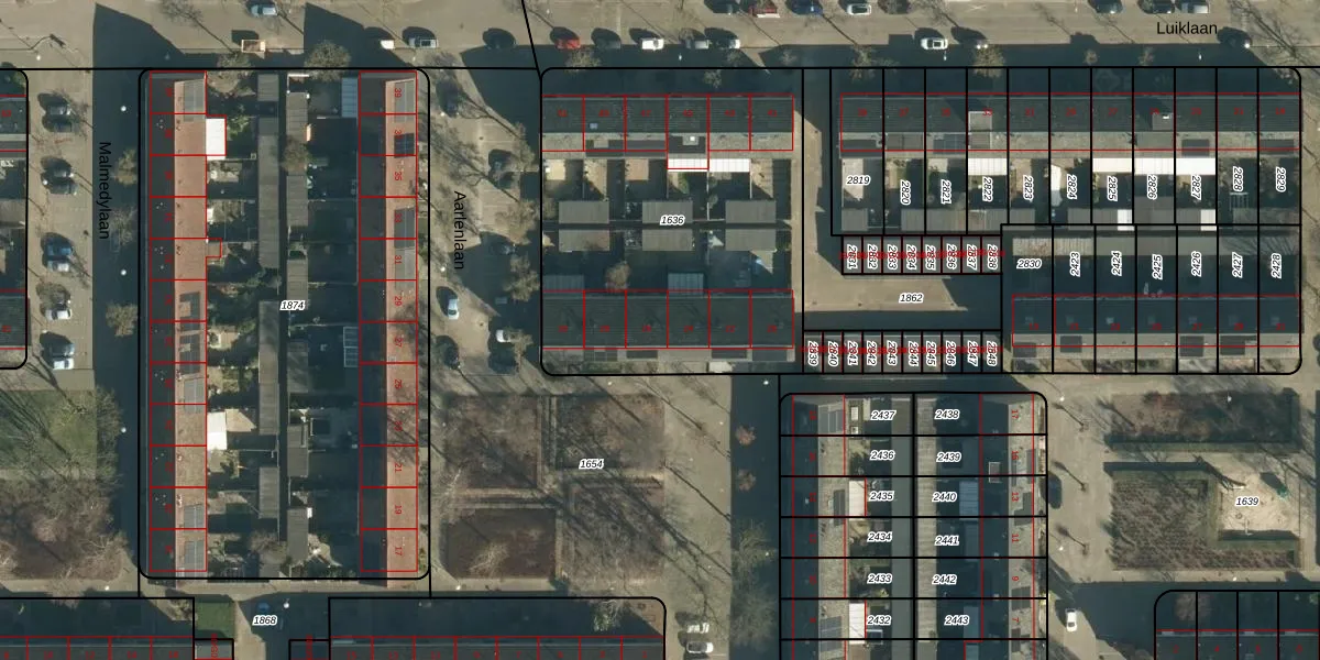 Het perceel waarop Aarlenlaan 26 staat heeft een oppervlakte van 1838 m². Dit is een zeer groot perceel. De perceeloppervlakte wordt geregistreerd door het Kadaster. Gedetailleerde informatie over de maten van dit perceel kunt u vinden in het rapport Kadastrale kaart met maatvoering van Aarlenlaan 26.