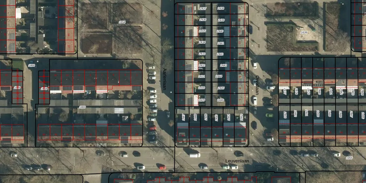 Gebruik de zoekbalk of klik op een perceel voor informatie over de adressen binnen dit perceel.