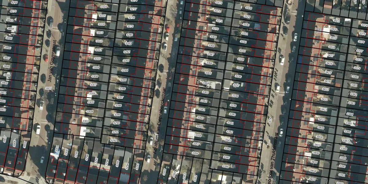 Gebruik de zoekbalk of klik op een perceel voor informatie over de adressen binnen dit perceel.
