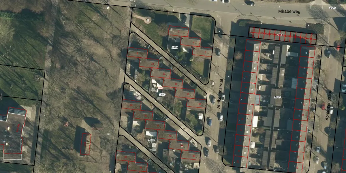Abrikozenstraat 14 is gelegen op kadastraal perceel WSL01C1680. Deze kadastrale aanduiding is uniek en wordt gebruikt door het Kadaster om eigendomsrechten en andere zakelijke rechten vast te leggen. Het perceel maakt onderdeel uit van de kadastrale gemeente Woensel.