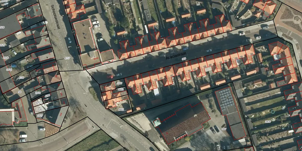 Acaciastraat 25 is gelegen op kadastraal perceel STR03C2876. Deze kadastrale aanduiding is uniek en wordt gebruikt door het Kadaster om eigendomsrechten en andere zakelijke rechten vast te leggen. Het perceel maakt onderdeel uit van de kadastrale gemeente Strijp.