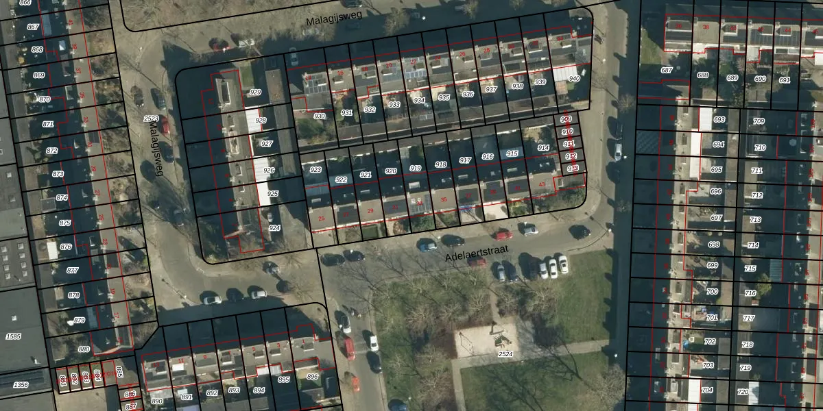Gebruik de zoekbalk of klik op een perceel voor informatie over de adressen binnen dit perceel.