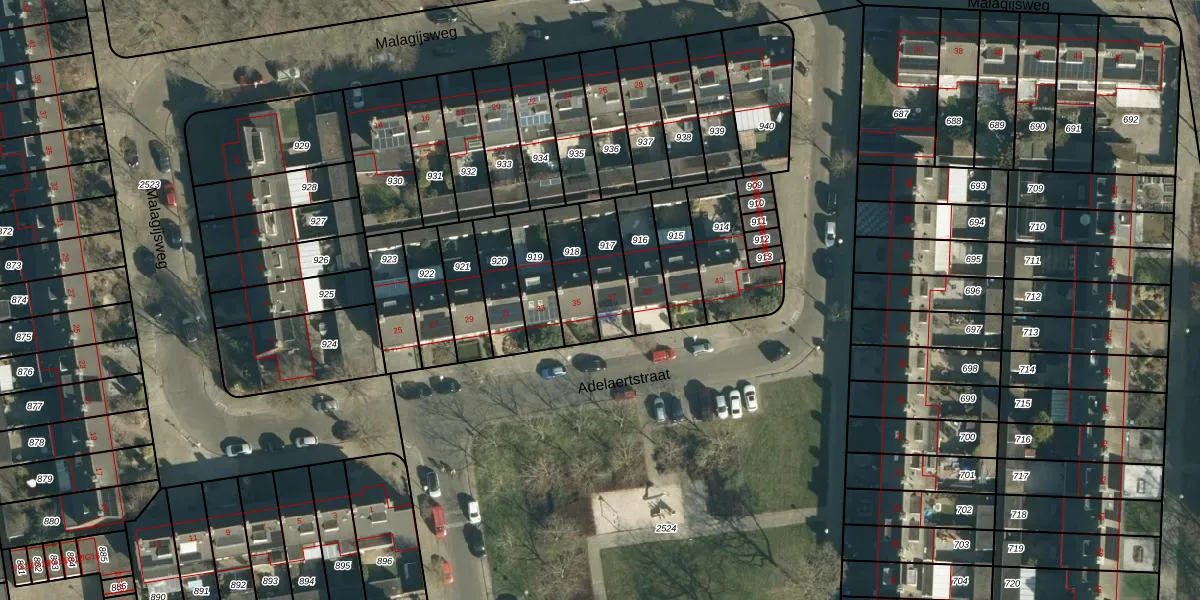 Gebruik de zoekbalk of klik op een perceel voor informatie over de adressen binnen dit perceel.