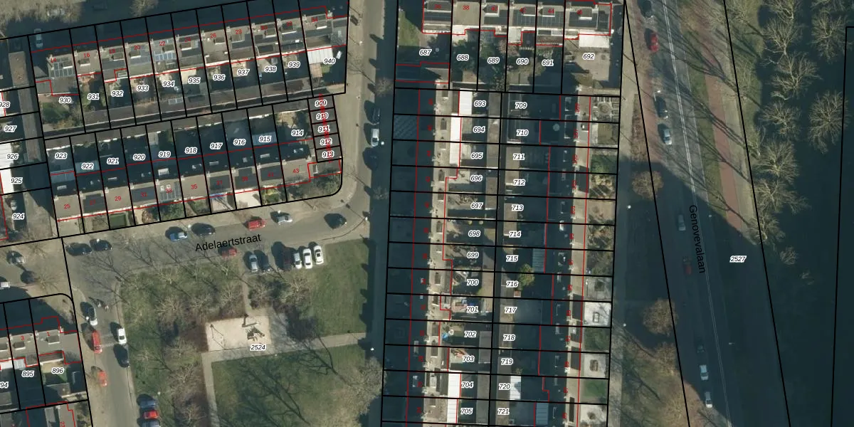 Adelaertstraat 40 is gelegen op kadastraal perceel WSL01P697. Deze kadastrale aanduiding is uniek en wordt gebruikt door het Kadaster om eigendomsrechten en andere zakelijke rechten vast te leggen. Het perceel maakt onderdeel uit van de kadastrale gemeente Woensel.