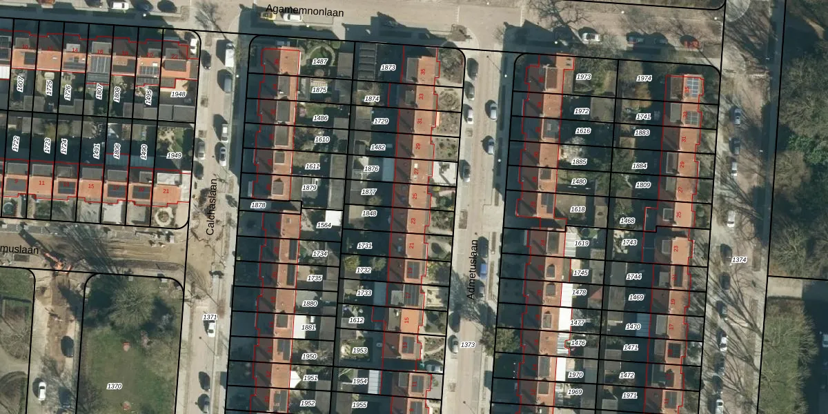 Gebruik de zoekbalk of klik op een perceel voor informatie over de adressen binnen dit perceel.