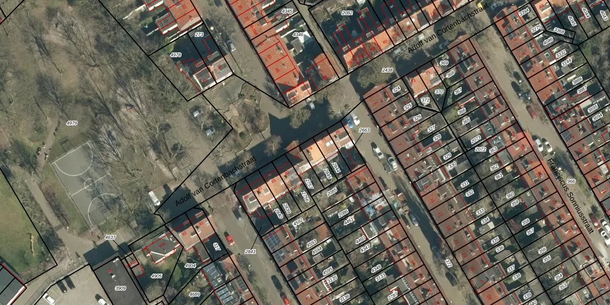 Het perceel waarop Adolf van Cortenbachstraat 79 staat heeft een oppervlakte van 86 m². Dit is een klein perceel. De perceeloppervlakte wordt geregistreerd door het Kadaster. Gedetailleerde informatie over de maten van dit perceel kunt u vinden in het rapport Kadastrale kaart met maatvoering van Adolf van Cortenbachstraat 79.