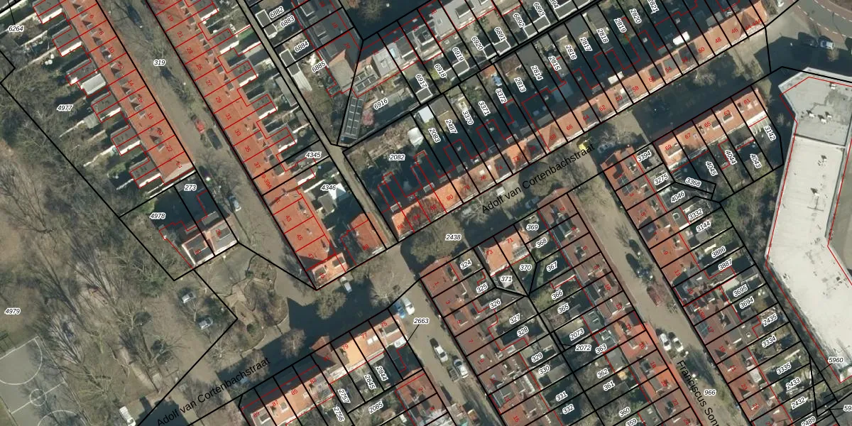 Het perceel waarop Adolf van Cortenbachstraat 82 staat heeft een oppervlakte van 458 m². Dit is een groot perceel. De perceeloppervlakte wordt geregistreerd door het Kadaster. Gedetailleerde informatie over de maten van dit perceel kunt u vinden in het rapport Kadastrale kaart met maatvoering van Adolf van Cortenbachstraat 82.