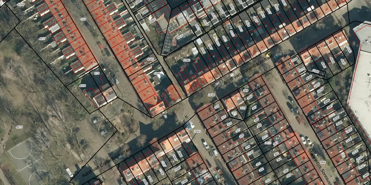 Het perceel waarop Adolf van Cortenbachstraat 86 staat heeft een oppervlakte van 458 m². Dit is een groot perceel. De perceeloppervlakte wordt geregistreerd door het Kadaster. Gedetailleerde informatie over de maten van dit perceel kunt u vinden in het rapport Kadastrale kaart met maatvoering van Adolf van Cortenbachstraat 86.