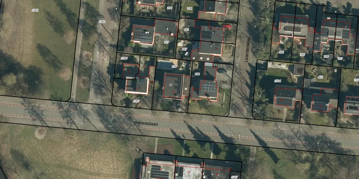 Gebruik de zoekbalk of klik op een perceel voor informatie over de adressen binnen dit perceel.