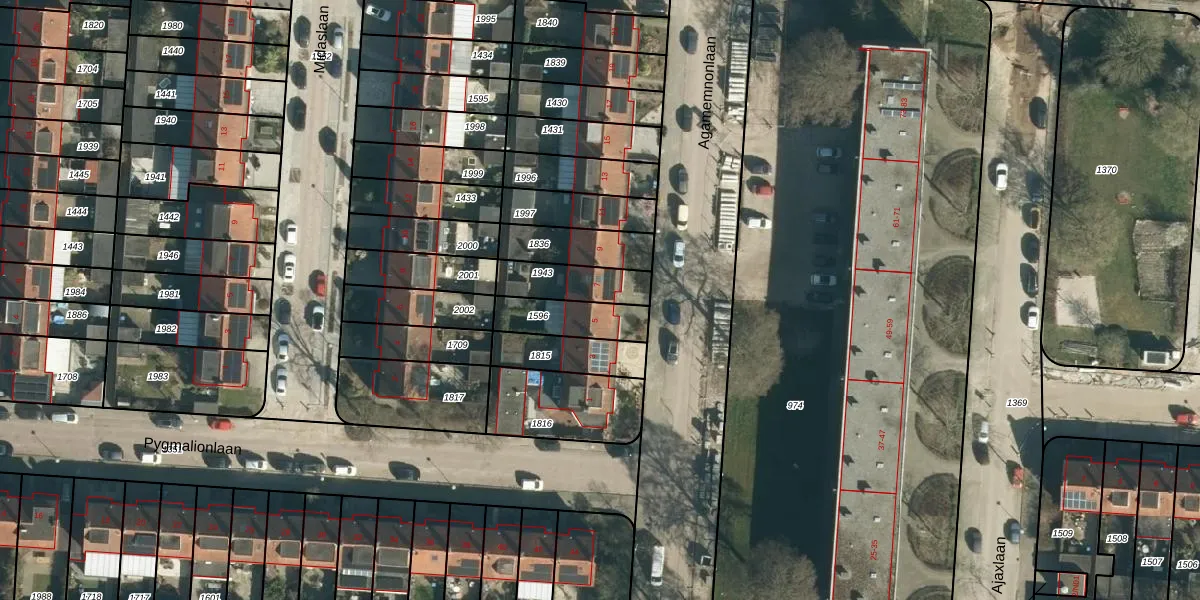 Het perceel waarop Agamemnonlaan 7 staat heeft een oppervlakte van 154 m². Dit is een middelgroot perceel. De perceeloppervlakte wordt geregistreerd door het Kadaster. Gedetailleerde informatie over de maten van dit perceel kunt u vinden in het rapport Kadastrale kaart met maatvoering van Agamemnonlaan 7.