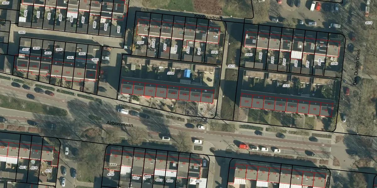 Airbornelaan 106 is gelegen op kadastraal perceel WSL01C1534. Deze kadastrale aanduiding is uniek en wordt gebruikt door het Kadaster om eigendomsrechten en andere zakelijke rechten vast te leggen. Het perceel maakt onderdeel uit van de kadastrale gemeente Woensel.