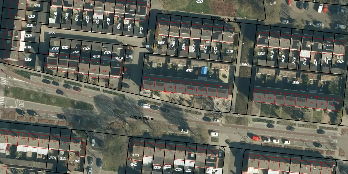 Airbornelaan 112 is gelegen op kadastraal perceel WSL01C1534. Deze kadastrale aanduiding is uniek en wordt gebruikt door het Kadaster om eigendomsrechten en andere zakelijke rechten vast te leggen. Het perceel maakt onderdeel uit van de kadastrale gemeente Woensel.