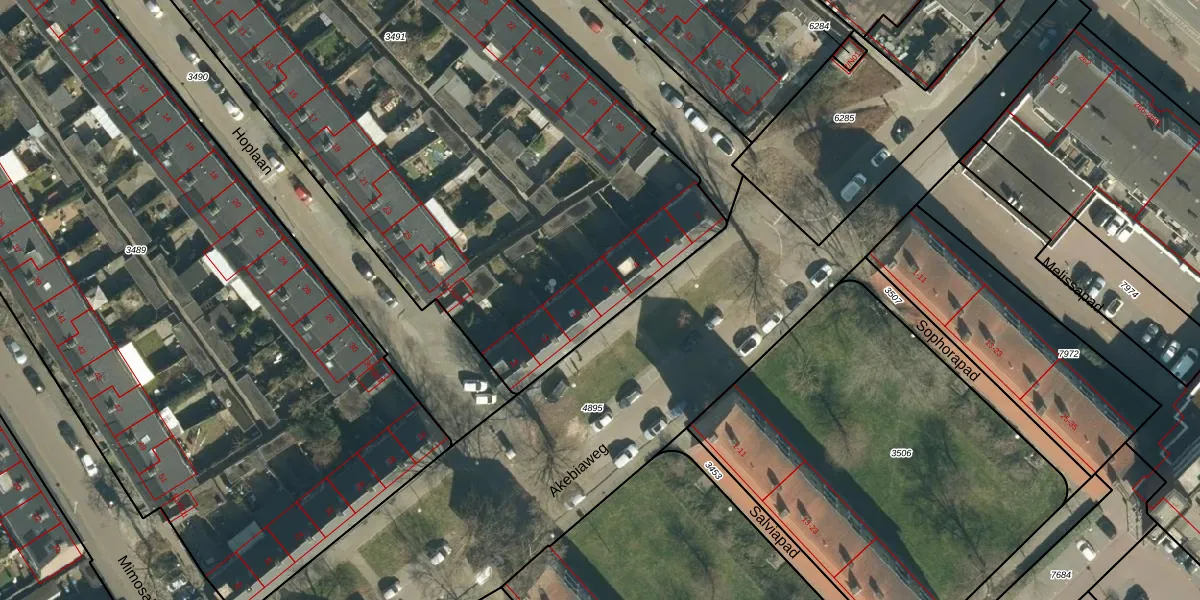 Het perceel waarop Akebiaweg 8 staat heeft een oppervlakte van 5045 m². Dit is een zeer groot perceel. De perceeloppervlakte wordt geregistreerd door het Kadaster. Gedetailleerde informatie over de maten van dit perceel kunt u vinden in het rapport Kadastrale kaart met maatvoering van Akebiaweg 8.