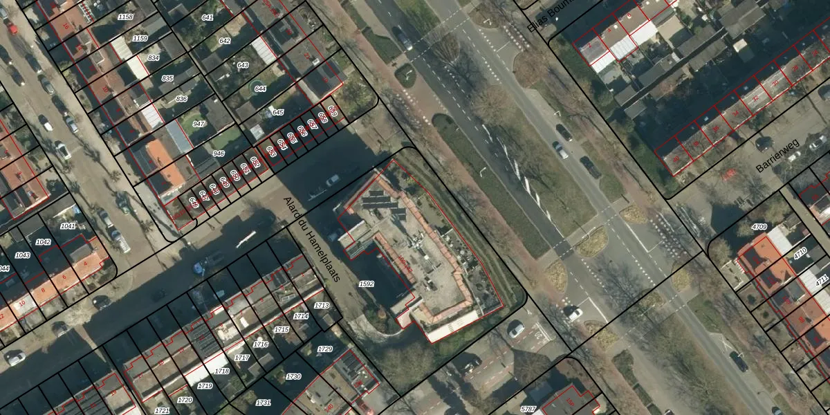 Het perceel waarop Alard du Hamelplaats 104 staat heeft een oppervlakte van 1897 m². Dit is een zeer groot perceel. De perceeloppervlakte wordt geregistreerd door het Kadaster. Gedetailleerde informatie over de maten van dit perceel kunt u vinden in het rapport Kadastrale kaart met maatvoering van Alard du Hamelplaats 104.
