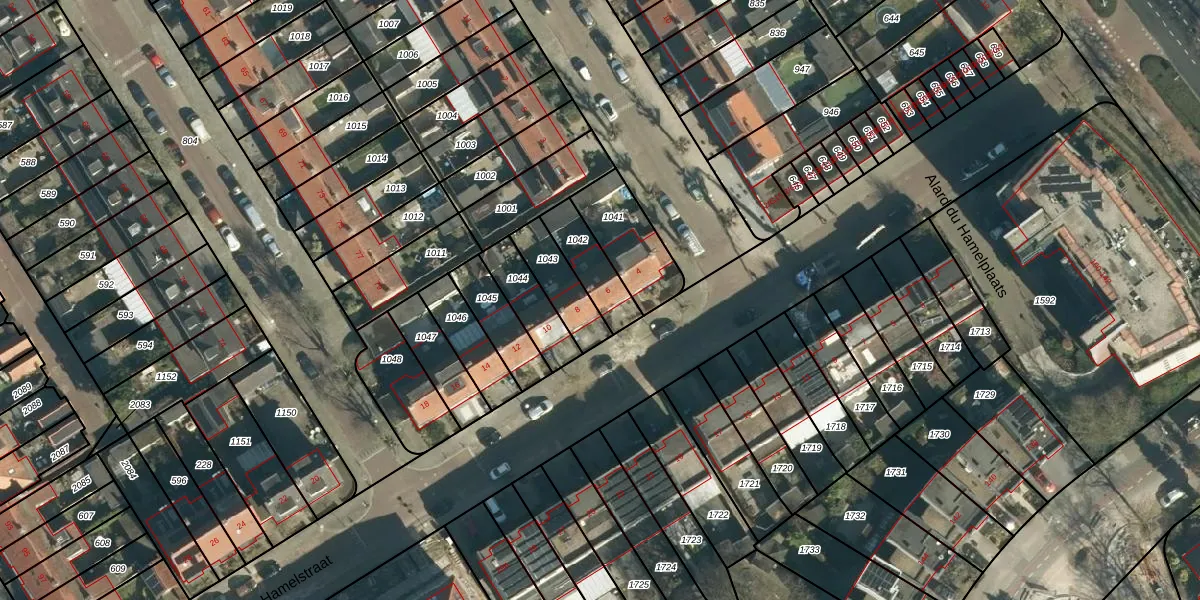 Het perceel waarop Alard du Hamelstraat 6 staat heeft een oppervlakte van 141 m². Dit is een middelgroot perceel. De perceeloppervlakte wordt geregistreerd door het Kadaster. Gedetailleerde informatie over de maten van dit perceel kunt u vinden in het rapport Kadastrale kaart met maatvoering van Alard du Hamelstraat 6.