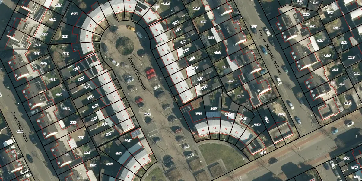 Het perceel waarop Albert Camuslaan 4 staat heeft een oppervlakte van 156 m². Dit is een middelgroot perceel. De perceeloppervlakte wordt geregistreerd door het Kadaster. Gedetailleerde informatie over de maten van dit perceel kunt u vinden in het rapport Kadastrale kaart met maatvoering van Albert Camuslaan 4.