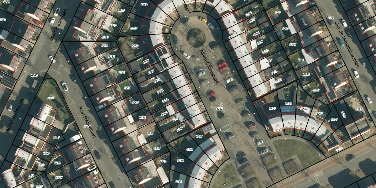 Het perceel waarop Albert Camuslaan 7 staat heeft een oppervlakte van 155 m². Dit is een middelgroot perceel. De perceeloppervlakte wordt geregistreerd door het Kadaster. Gedetailleerde informatie over de maten van dit perceel kunt u vinden in het rapport Kadastrale kaart met maatvoering van Albert Camuslaan 7.