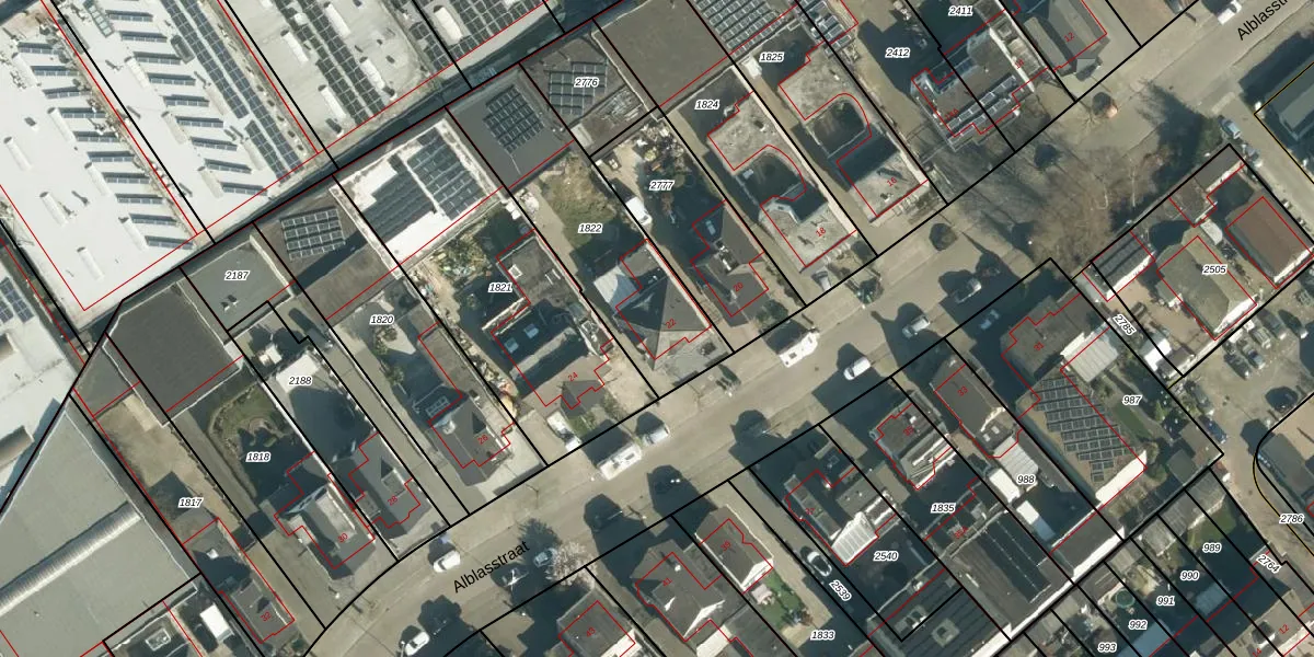 Het perceel waarop Alblasstraat 22 staat heeft een oppervlakte van 722 m². Dit is een groot perceel. De perceeloppervlakte wordt geregistreerd door het Kadaster. Gedetailleerde informatie over de maten van dit perceel kunt u vinden in het rapport Kadastrale kaart met maatvoering van Alblasstraat 22.