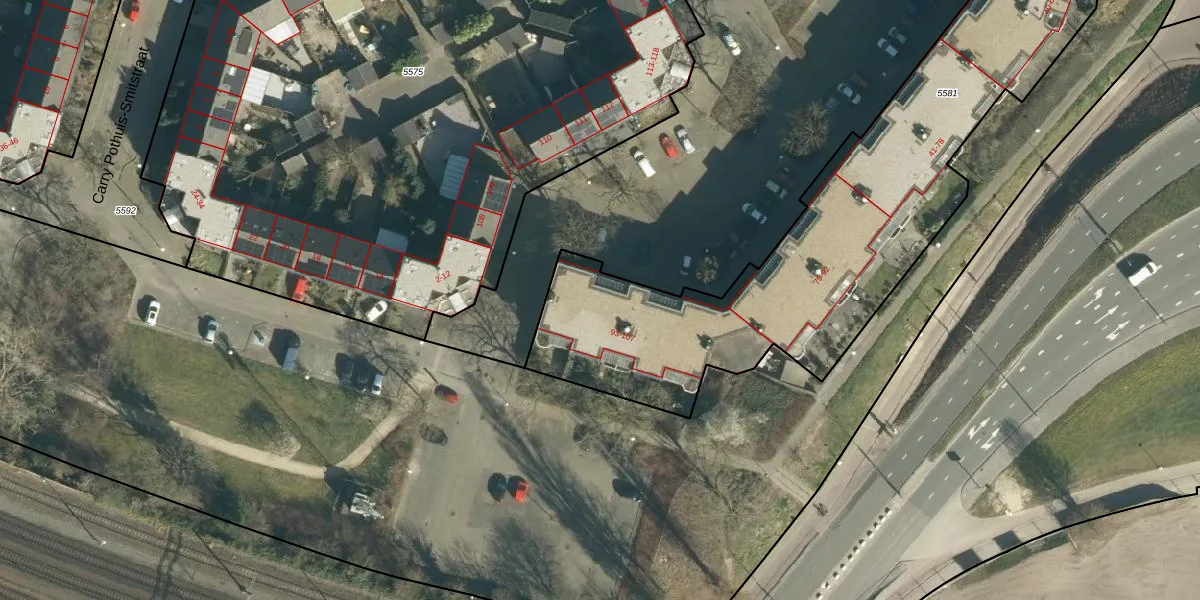 Het perceel waarop het adres ligt is WSL01-G-5581. De afkorting 'WSL01' staat voor kadastrale gemeente Woensel. Het perceel is met 3447 m² relatief groot. Het gemiddelde ligt in de kadastrale gemeente Woensel op 1039,1 m². Het grootste perceel in de kadastrale gemeente is 74,9 ha. Het kleinste perceel heeft een oppervlakte van 0 m². Er zijn 107 adressen aanwezig op het perceel. In de Basisregistratie Kadaster (BRK) werden de grenzen van het perceel geregistreerd op 16-05-2007.