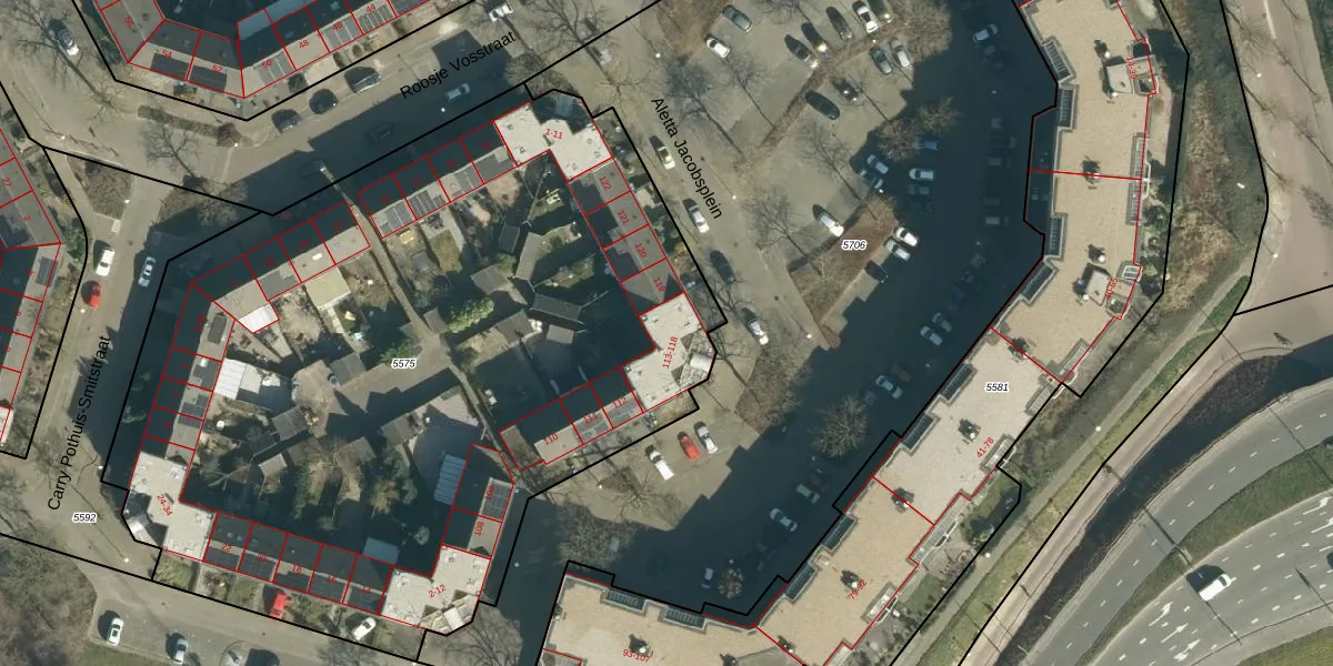 Aletta Jacobsplein 118 is gelegen op kadastraal perceel WSL01G5575. Deze kadastrale aanduiding is uniek en wordt gebruikt door het Kadaster om eigendomsrechten en andere zakelijke rechten vast te leggen. Het perceel maakt onderdeel uit van de kadastrale gemeente Woensel.