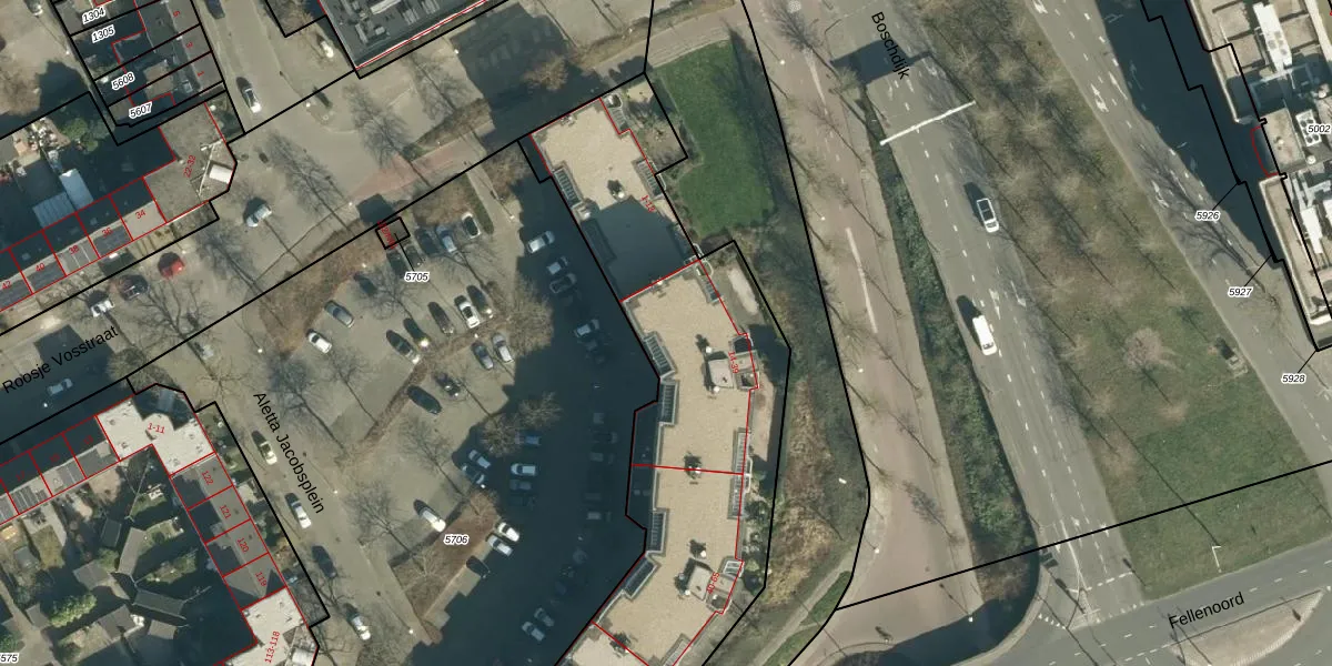 Aletta Jacobsplein 25 is gelegen op kadastraal perceel WSL01G5581. Deze kadastrale aanduiding is uniek en wordt gebruikt door het Kadaster om eigendomsrechten en andere zakelijke rechten vast te leggen. Het perceel maakt onderdeel uit van de kadastrale gemeente Woensel.