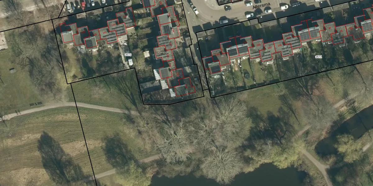 Het perceel waarop Allersma 119 staat heeft een oppervlakte van 3294 m². Dit is een zeer groot perceel. De perceeloppervlakte wordt geregistreerd door het Kadaster. Gedetailleerde informatie over de maten van dit perceel kunt u vinden in het rapport Kadastrale kaart met maatvoering van Allersma 119.