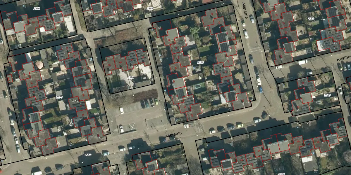 Het perceel waarop Allersma 40 staat heeft een oppervlakte van 2957 m². Dit is een zeer groot perceel. De perceeloppervlakte wordt geregistreerd door het Kadaster. Gedetailleerde informatie over de maten van dit perceel kunt u vinden in het rapport Kadastrale kaart met maatvoering van Allersma 40.