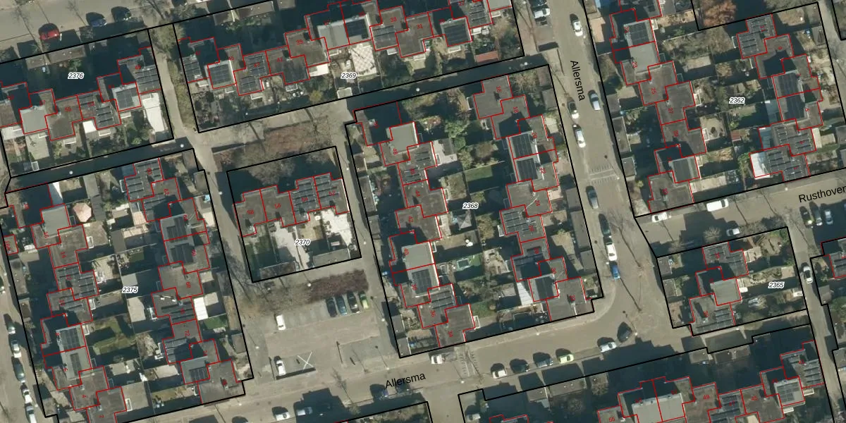 Het perceel waarop Allersma 44 staat heeft een oppervlakte van 2957 m². Dit is een zeer groot perceel. De perceeloppervlakte wordt geregistreerd door het Kadaster. Gedetailleerde informatie over de maten van dit perceel kunt u vinden in het rapport Kadastrale kaart met maatvoering van Allersma 44.
