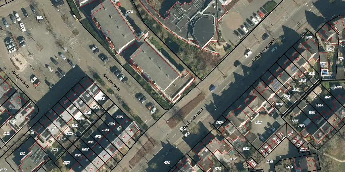 Ambonplein 2 is gelegen op kadastraal perceel TGR00D1064. Deze kadastrale aanduiding is uniek en wordt gebruikt door het Kadaster om eigendomsrechten en andere zakelijke rechten vast te leggen. Het perceel maakt onderdeel uit van de kadastrale gemeente Tongelre.