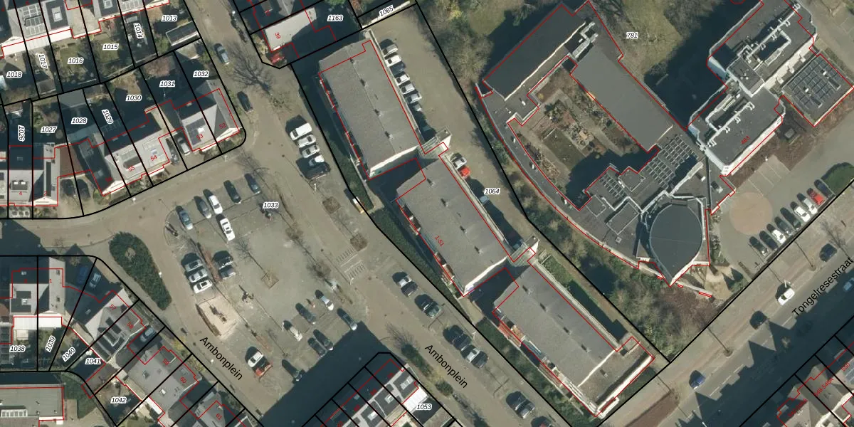 Ambonplein 33 is gelegen op kadastraal perceel TGR00D1064. Deze kadastrale aanduiding is uniek en wordt gebruikt door het Kadaster om eigendomsrechten en andere zakelijke rechten vast te leggen. Het perceel maakt onderdeel uit van de kadastrale gemeente Tongelre.
