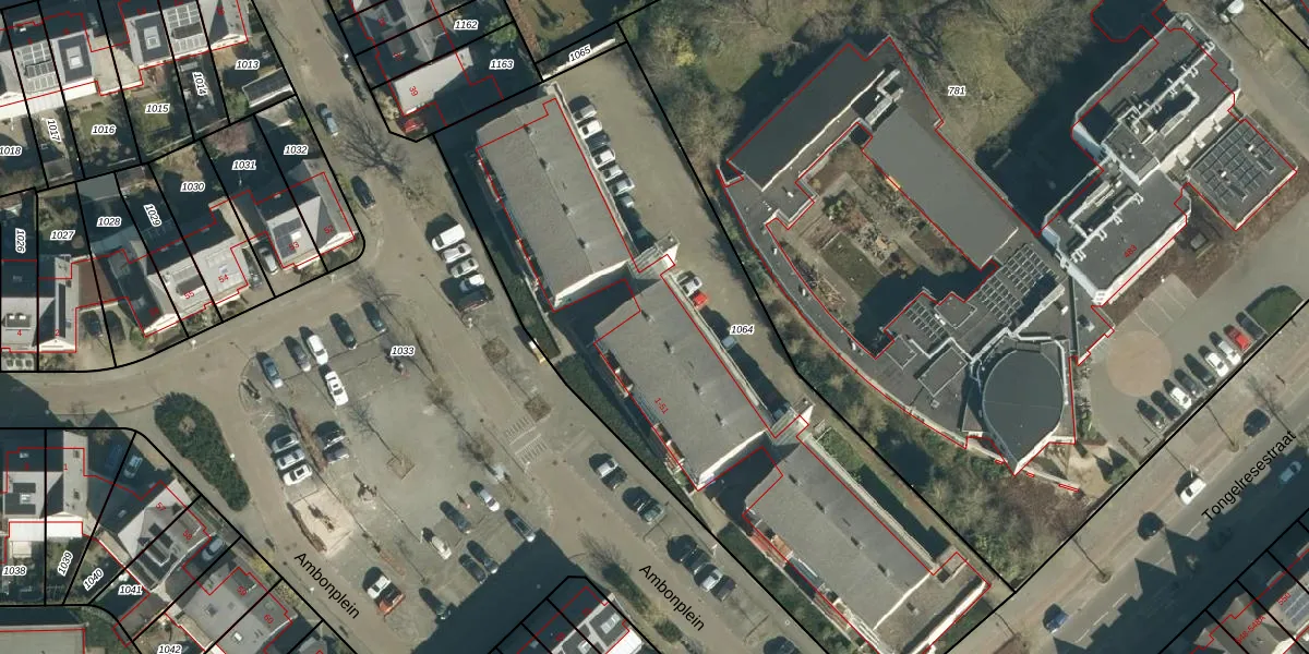 Ambonplein 34 is gelegen op kadastraal perceel TGR00D1064. Deze kadastrale aanduiding is uniek en wordt gebruikt door het Kadaster om eigendomsrechten en andere zakelijke rechten vast te leggen. Het perceel maakt onderdeel uit van de kadastrale gemeente Tongelre.