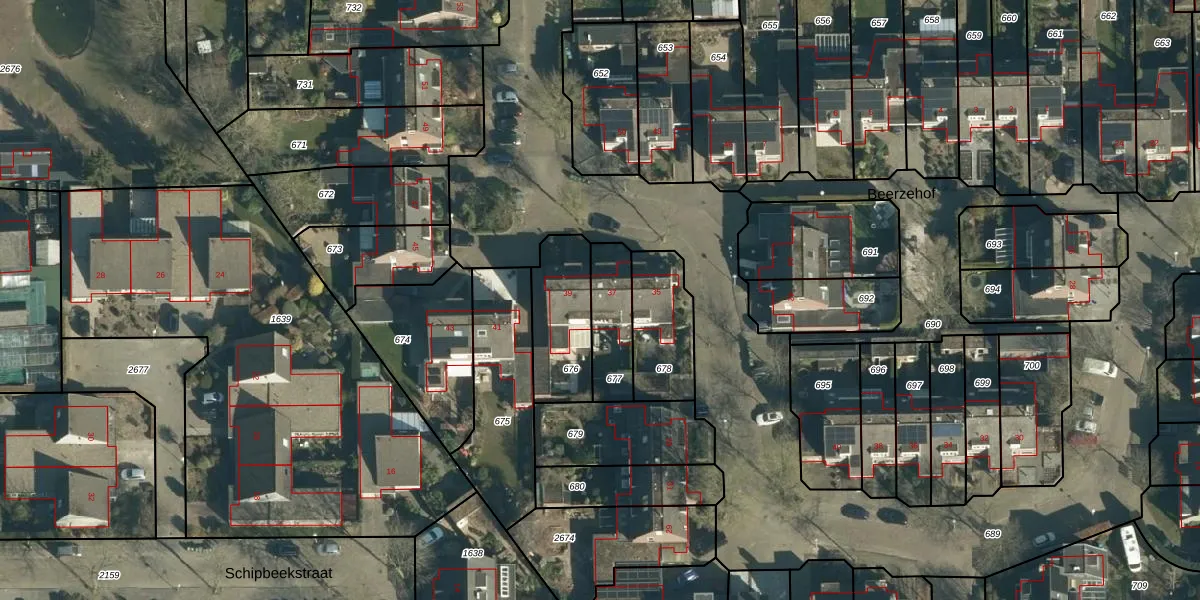 Gebruik de zoekbalk of klik op een perceel voor informatie over de adressen binnen dit perceel.