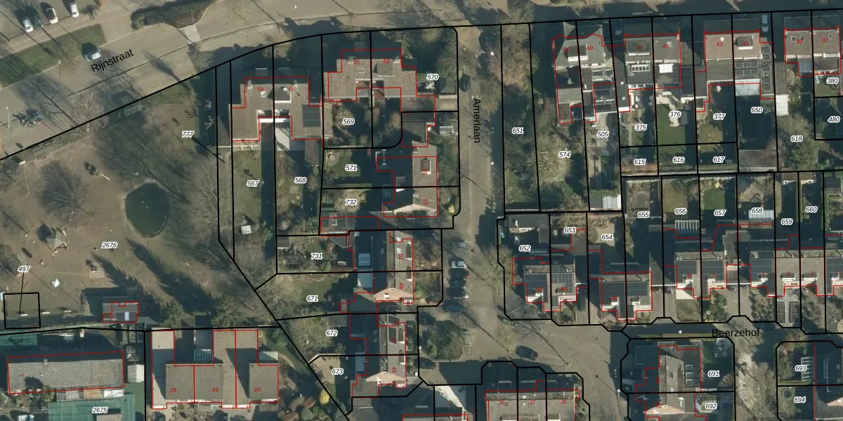 Het perceel waarop Amerlaan 53 staat heeft een oppervlakte van 331 m². Dit is een groot perceel. De perceeloppervlakte wordt geregistreerd door het Kadaster. Gedetailleerde informatie over de maten van dit perceel kunt u vinden in het rapport Kadastrale kaart met maatvoering van Amerlaan 53.