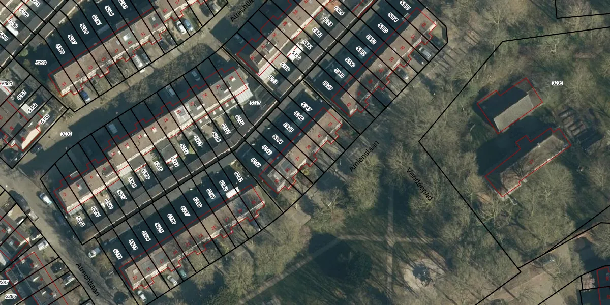Het perceel waarop Amienslaan 39 staat heeft een oppervlakte van 134 m². Dit is een middelgroot perceel. De perceeloppervlakte wordt geregistreerd door het Kadaster. Gedetailleerde informatie over de maten van dit perceel kunt u vinden in het rapport Kadastrale kaart met maatvoering van Amienslaan 39.