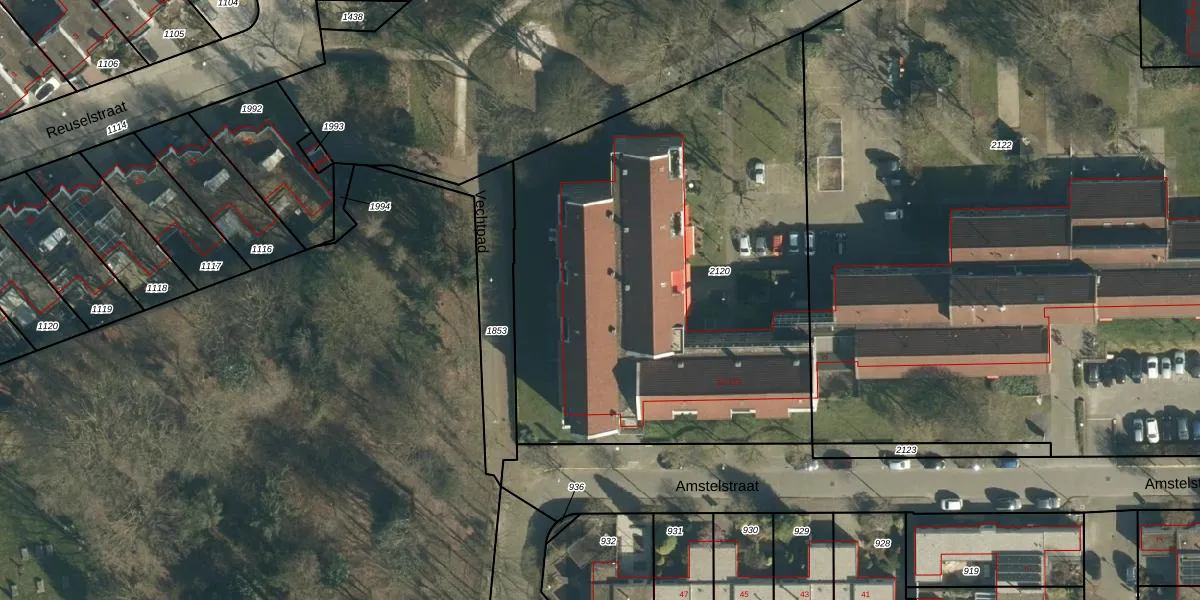 Het perceel waarop Amstelstraat 154 staat heeft een oppervlakte van 2840 m². Dit is een zeer groot perceel. De perceeloppervlakte wordt geregistreerd door het Kadaster. Gedetailleerde informatie over de maten van dit perceel kunt u vinden in het rapport Kadastrale kaart met maatvoering van Amstelstraat 154.