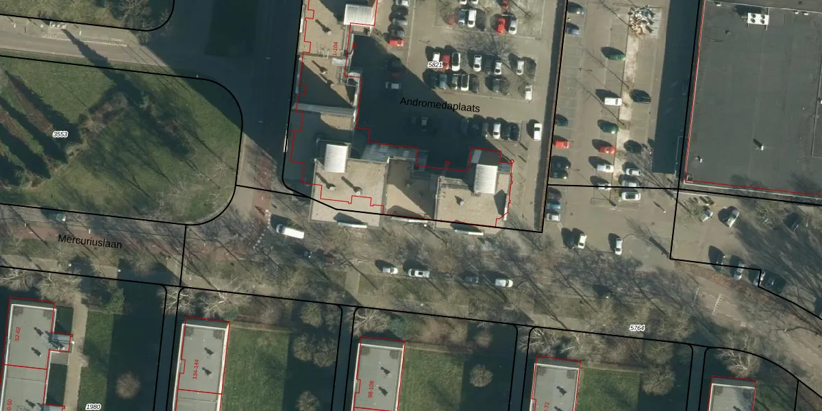Het perceel waarop Andromedaplaats 101 staat heeft een oppervlakte van 4335 m². Dit is een zeer groot perceel. De perceeloppervlakte wordt geregistreerd door het Kadaster. Gedetailleerde informatie over de maten van dit perceel kunt u vinden in het rapport Kadastrale kaart met maatvoering van Andromedaplaats 101.