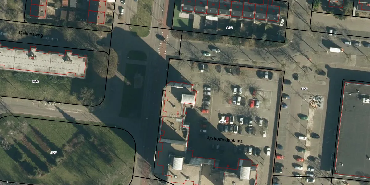 Het perceel waarop Andromedaplaats 23 staat heeft een oppervlakte van 4335 m². Dit is een zeer groot perceel. De perceeloppervlakte wordt geregistreerd door het Kadaster. Gedetailleerde informatie over de maten van dit perceel kunt u vinden in het rapport Kadastrale kaart met maatvoering van Andromedaplaats 23.