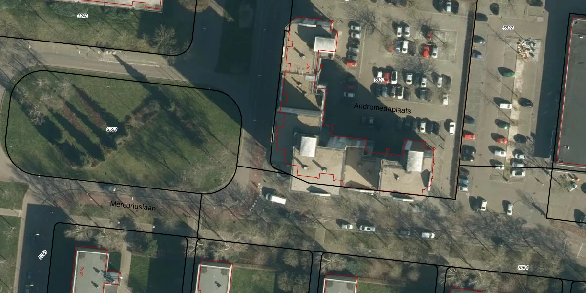 Het perceel waarop Andromedaplaats 27 staat heeft een oppervlakte van 4335 m². Dit is een zeer groot perceel. De perceeloppervlakte wordt geregistreerd door het Kadaster. Gedetailleerde informatie over de maten van dit perceel kunt u vinden in het rapport Kadastrale kaart met maatvoering van Andromedaplaats 27.