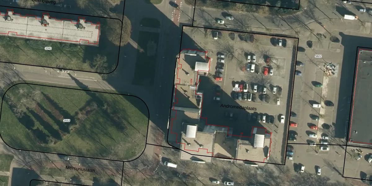 Het perceel waarop Andromedaplaats 3 staat heeft een oppervlakte van 4335 m². Dit is een zeer groot perceel. De perceeloppervlakte wordt geregistreerd door het Kadaster. Gedetailleerde informatie over de maten van dit perceel kunt u vinden in het rapport Kadastrale kaart met maatvoering van Andromedaplaats 3.