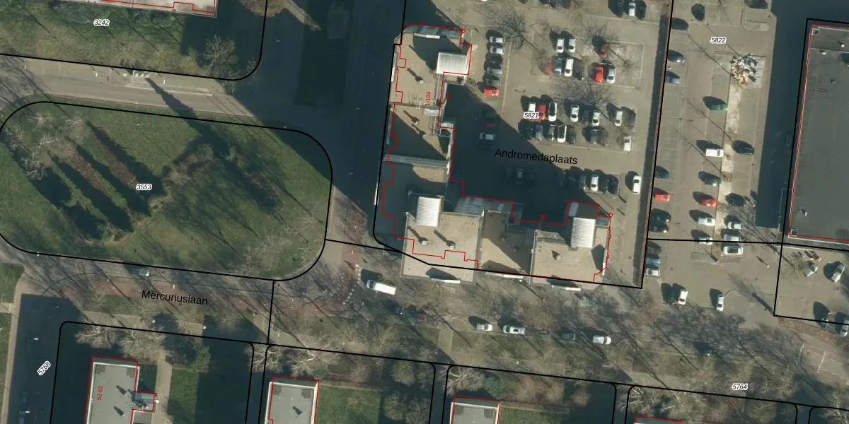 Het perceel waarop Andromedaplaats 33 staat heeft een oppervlakte van 4335 m². Dit is een zeer groot perceel. De perceeloppervlakte wordt geregistreerd door het Kadaster. Gedetailleerde informatie over de maten van dit perceel kunt u vinden in het rapport Kadastrale kaart met maatvoering van Andromedaplaats 33.