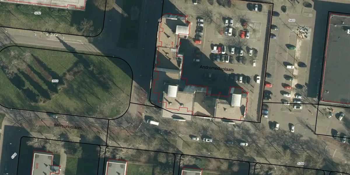 Het perceel waarop Andromedaplaats 42 staat heeft een oppervlakte van 4335 m². Dit is een zeer groot perceel. De perceeloppervlakte wordt geregistreerd door het Kadaster. Gedetailleerde informatie over de maten van dit perceel kunt u vinden in het rapport Kadastrale kaart met maatvoering van Andromedaplaats 42.