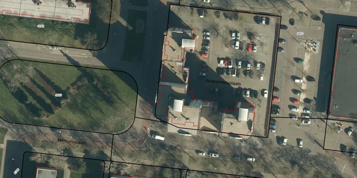 Het perceel waarop Andromedaplaats 65 staat heeft een oppervlakte van 4335 m². Dit is een zeer groot perceel. De perceeloppervlakte wordt geregistreerd door het Kadaster. Gedetailleerde informatie over de maten van dit perceel kunt u vinden in het rapport Kadastrale kaart met maatvoering van Andromedaplaats 65.